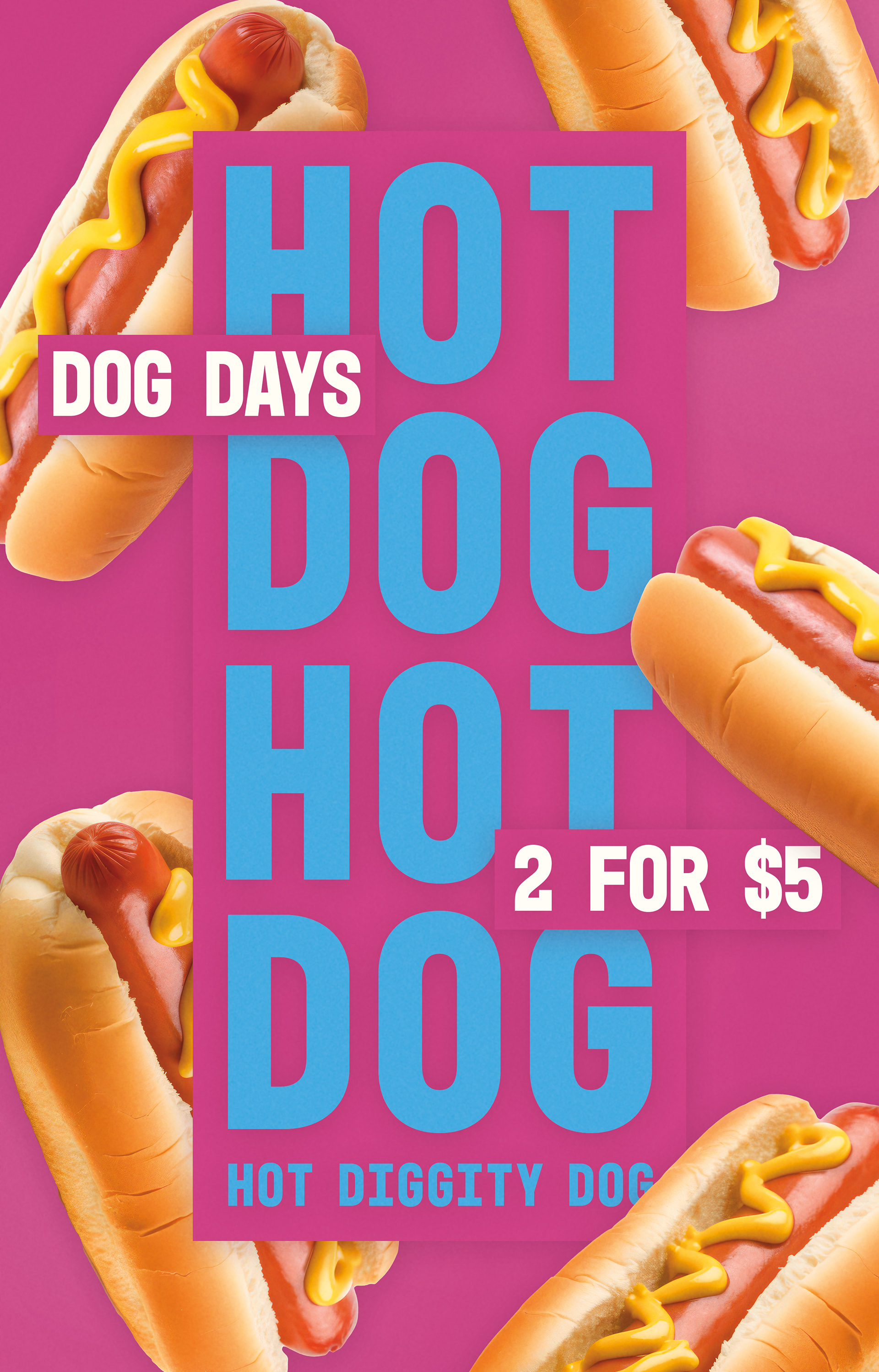 hot dog! Here's a super fun and colorful poster series i designed as a theoretical project. I took design inspiration from taco bell's design group, and wanted to create something for a trendier wawa-style convenience store and eatery.